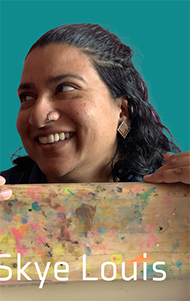 Skye is a Goan-Torontonian printmaker and arts educator based in Calgary. Themes in Skye’s work include human connection, empowerment, and accessibility as well as decolonial theory and globalized consumer capitalism. Their prints are playful, bold, and often made with vibrant colour and unconventional materials. As a printmaker, Skye is interested in experimental processes and material transformation. As an arts educator, Skye focuses on making complex ideas and skills accessible through hands-on, interactive processes.