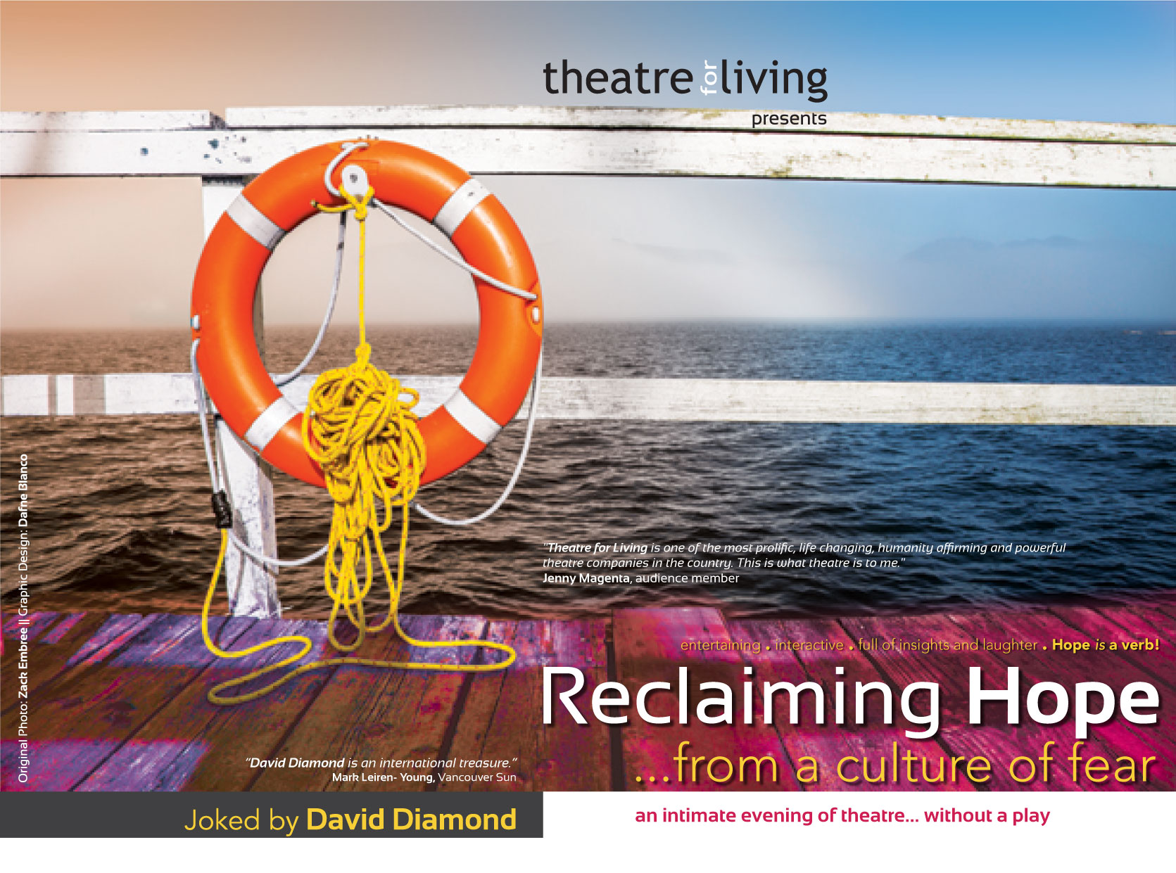 Hope is a verb. At Reclaiming Hope events, interactive theatre becomes a laboratory for change, one voice at a time. With David Diamond aka “Joker” facilitating each event (“Joker” is a term from Augusto Boal’s “Theatre of the Oppressed” to describe the facilitator of the interactive theatre event), audiences with leave with a deeper knowledge of themselves and each other, armed with tools to create healthier inner worlds, families and communities – and reflecting the shifting psyche of a nation that acts, elects, and then holds government accountable."